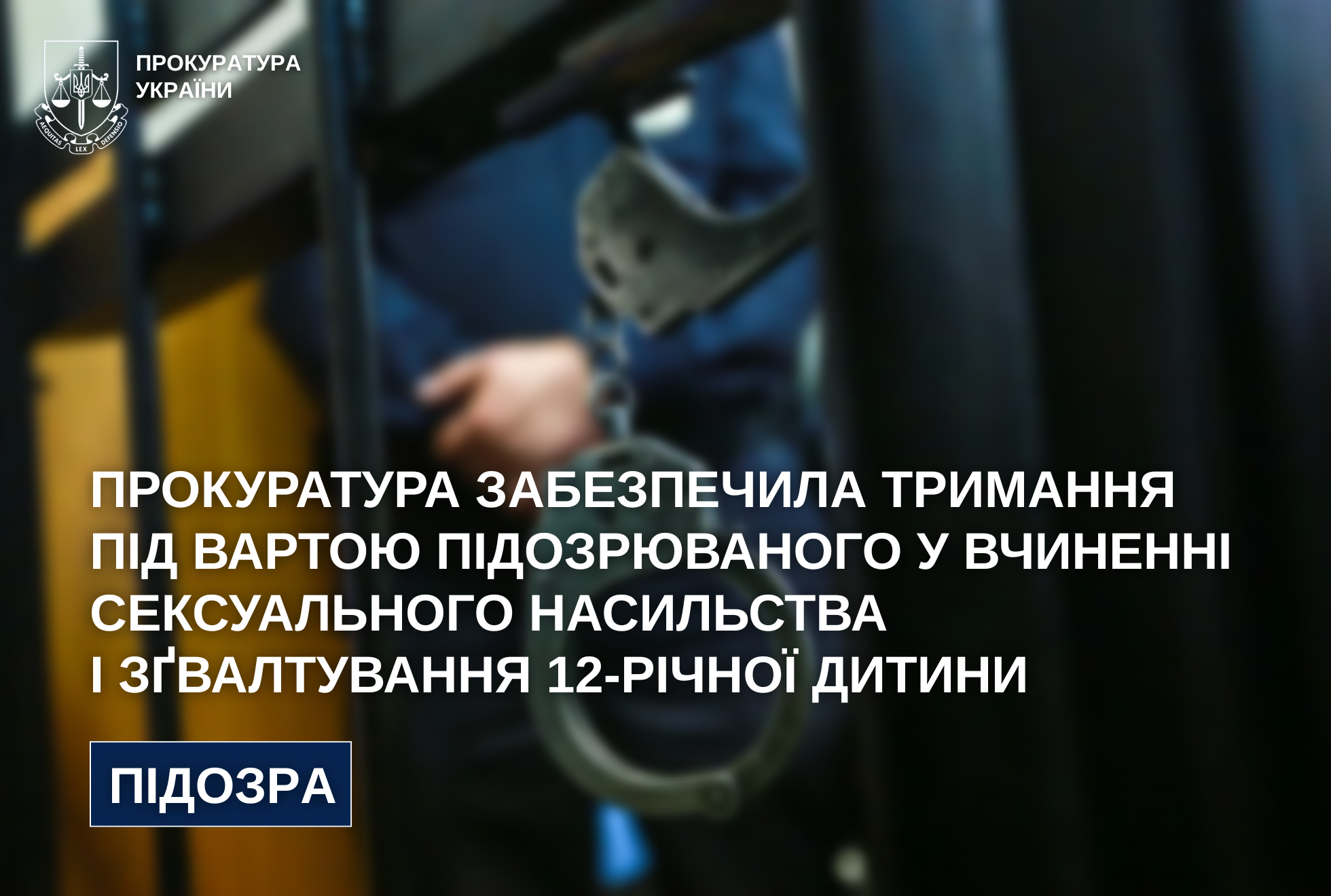 Прокуратура забезпечила тримання під вартою підозрюваного у вчиненні сексуального насильства і зґвалтування 12-річної дитини